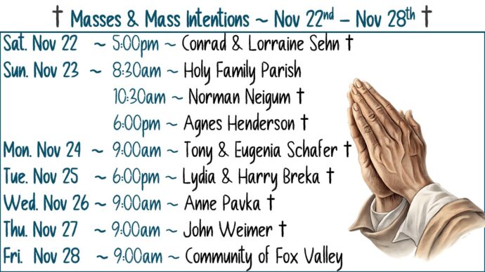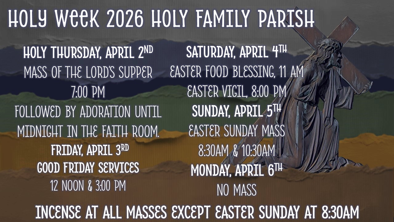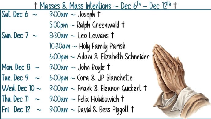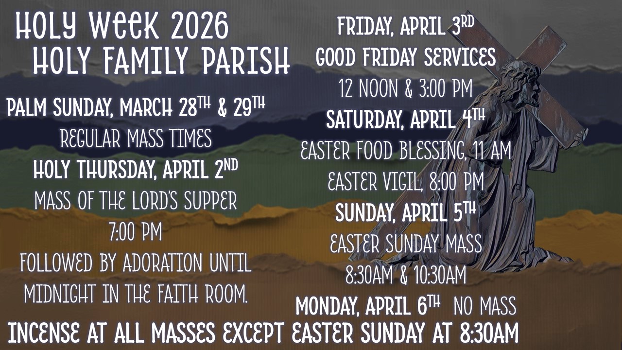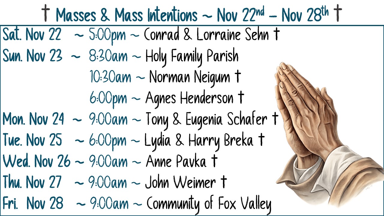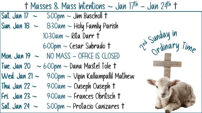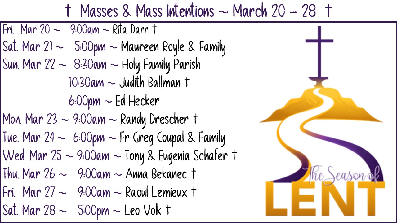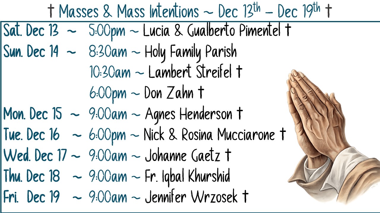 HOLY FAMILY PARISH MASS INTENTION GUIDELINES Due to the overwhelming amount of Mass Intentions that we receive at Holy Family Parish we have set some guidelines. We realize that people want Masses on certain dates and some don’t care when it happens. We have......