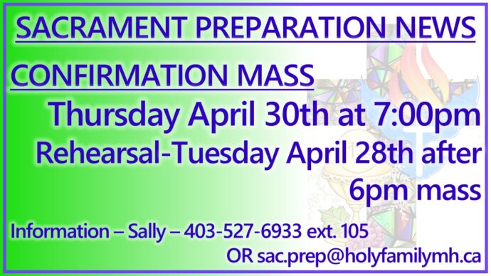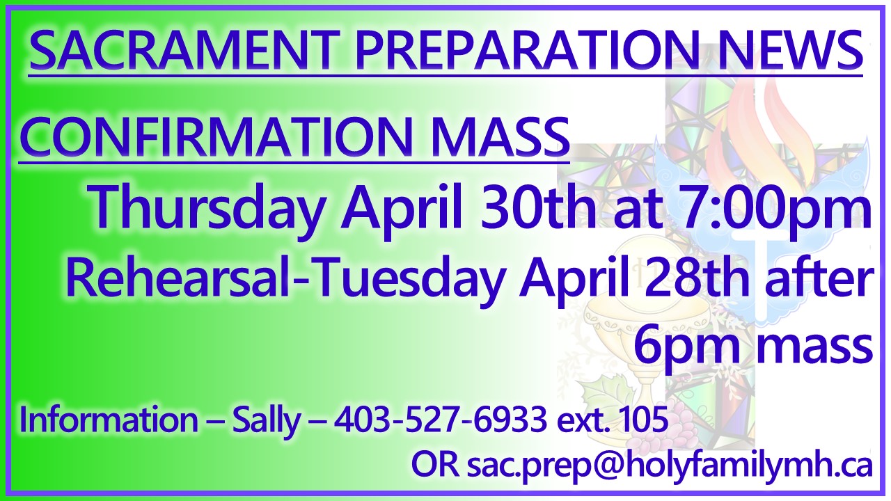 Reconciliation is also available by appointment. Please contact the office at 403-527-6933.